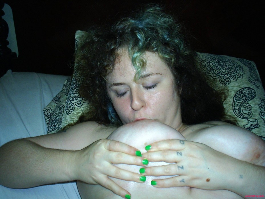 Sucking her tit.