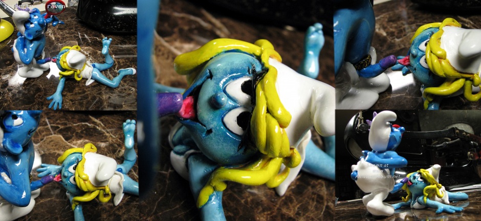 Most of you know me as Ravens husband and cameraman. I am also an Artist in other mediums other than the camera. What I would like to present to you for your review is two small clay figures that took me about 2 months to complete... The title of this piece is " Smurfing Around ". If this posting goes well and your interested in seeing more, I will be happy to add into Ravens gallery some of my past and future creations. Its up to you, let me know if my art is something you would like to keep an eye on as well as my wife.....lol