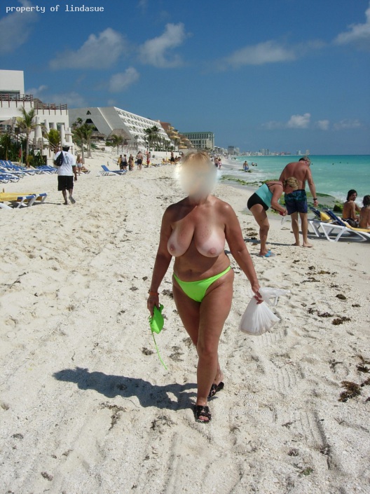 Would really like to see you on the beach and pretend to drop something and then be on my knees as you walk closer. I would ask you to help look and as you bend over to look your huge breasts would swing forwards and I know I would get so horny that I would not be able to take my eyes off your breasts and your sexy nipple and tan lines. Would you let me suck on your nipple on the neach in front of your partner and my wife????