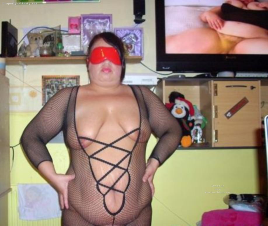 Love to see a sexy full-bodied woman in a fishnet stocking - it really emphasises her curves. Her hot titties look great in it.