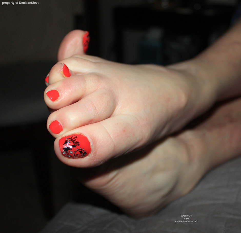 I have to admit that I have a BIG foot fetish and your photo sure makes me crazy for your sexy feet. I would love to give your sexy feet some very special attention... This color looks great!