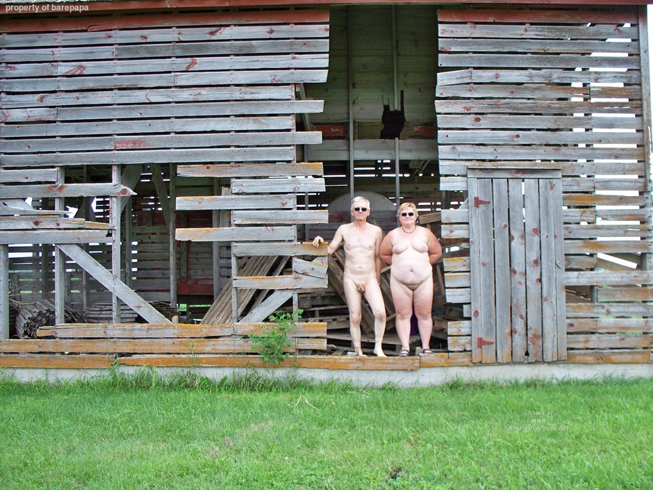 Naked at an old building