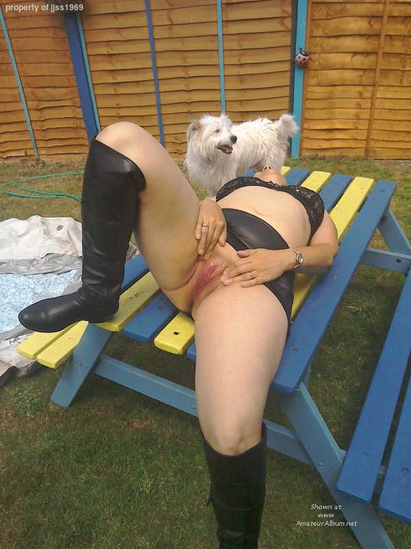 Nice spread of her pink - who's looking at the dog?!