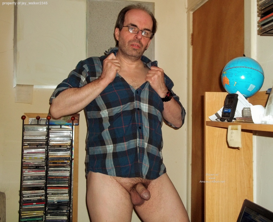 Bottomless nerd in a plaid shirt