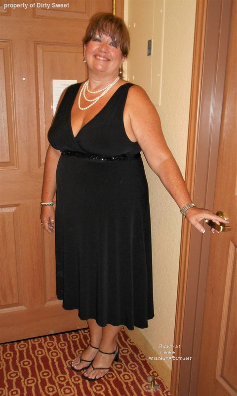Pearls, long black dress, and just a hint of cleavage.....And SO FUCKIN' SEXXXY!