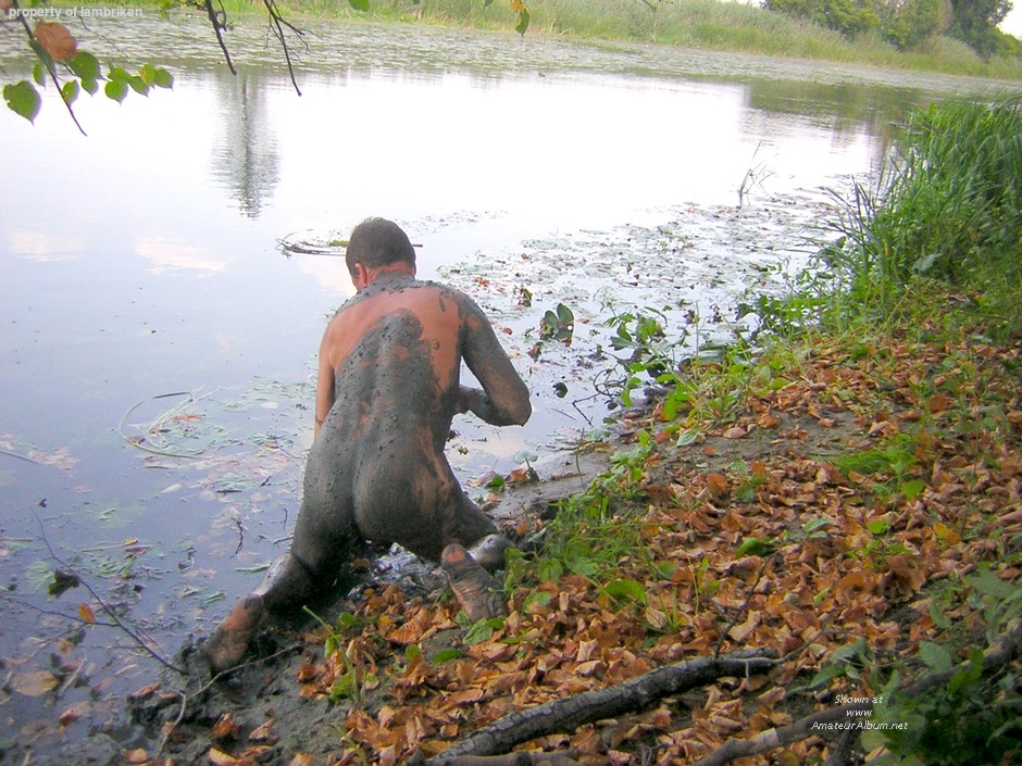 a bad boy with a dirty ass crawling on the muddy Bank of the river