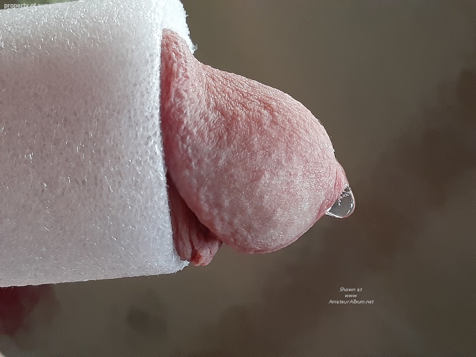Drop of Precum suspended from the tip.