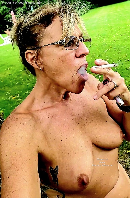 Great outdoor shot, very sexy. Would love her to burn my nipples with that cigarette... ❤️