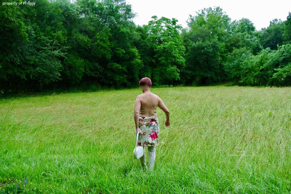 When making a good walk, I convinced my wife to take of her shirt and bra and to show her big tits to the world.