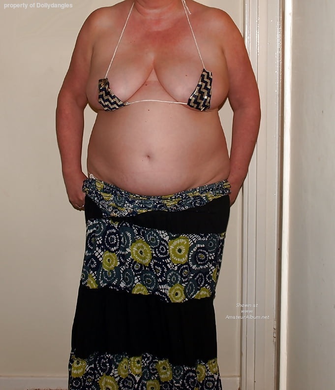 SOMETIMES THE TINY MICROBIKINI ONLY BARELY COVERS THE NIPPLES , ASS AND PUSSY AS HERE IN THE CASE OF MY WIFE !