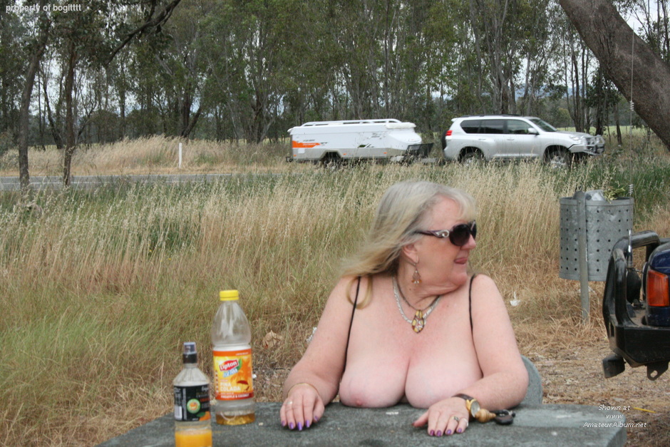 tits out at a roadside stop
