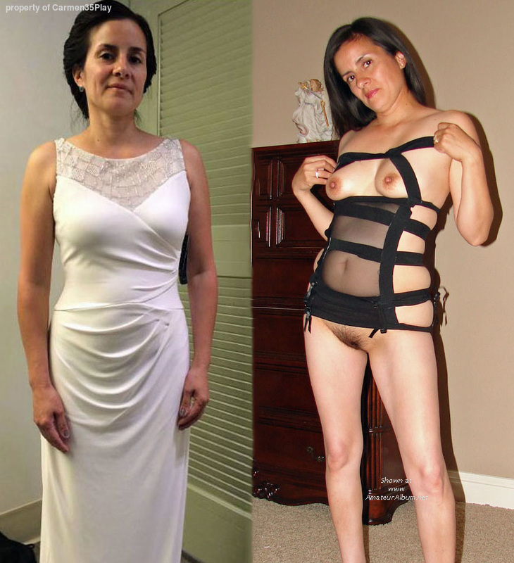You are sexy on both pics. The dress show perfectly your divines curves,the other photo multiplies desires that are not wise at all