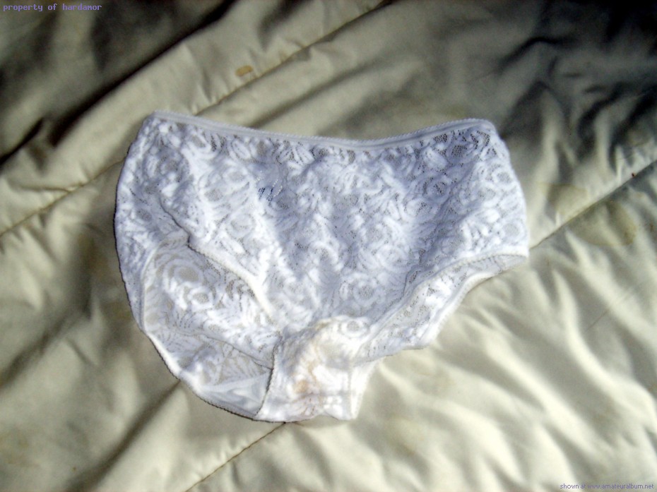 Photo made this morning of her dirty panties , she has worn yesterday and all night. I fuck her yesterday evening, without remove the panties, just pulling the crotch aside to insert my cock...