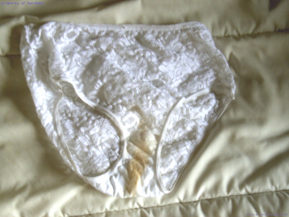 Photo made this morning of her dirty panties , she has worn yesterday and all night. I fuck her yesterday evening, without remove the panties, just pulling the crotch aside to insert my cock...