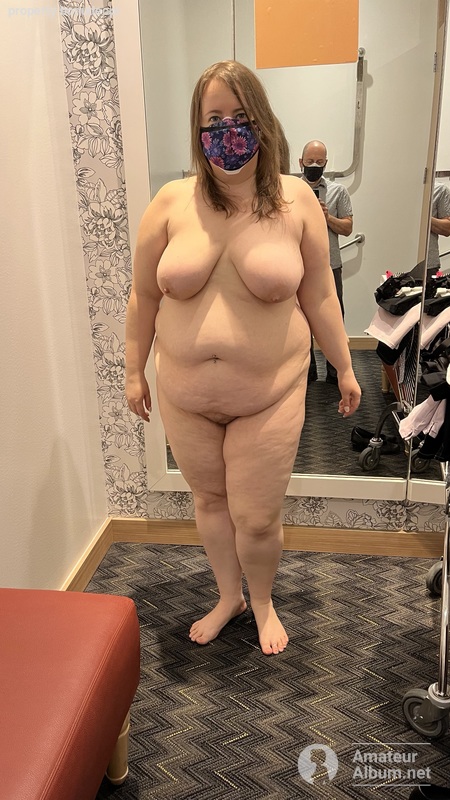 My BBW wife totally naked in the department store fitting room