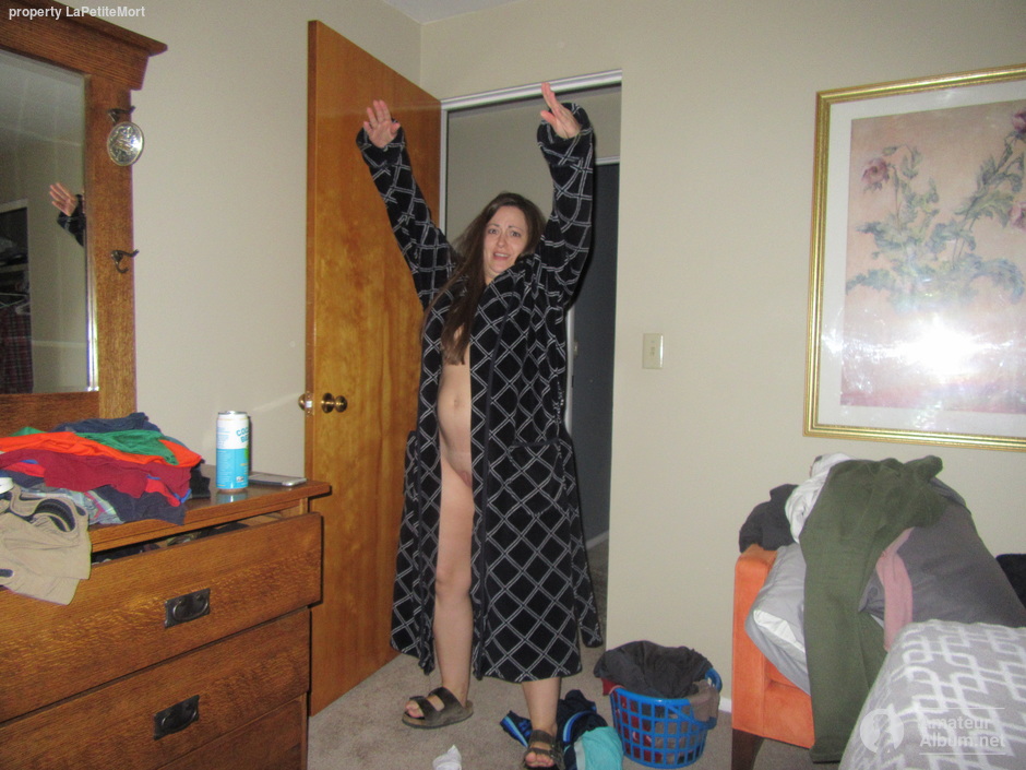 Tegan happy in the robe