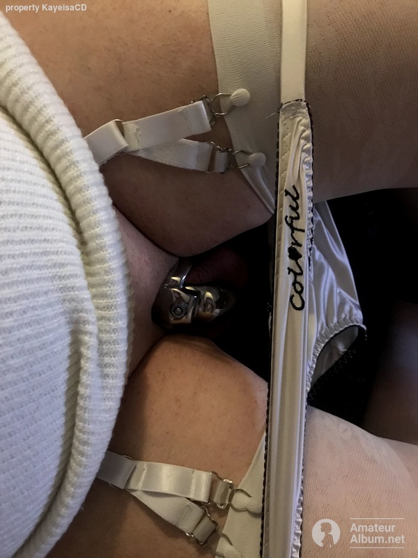 A glimpse showing Stockings, Suspenders & my Cock Cage