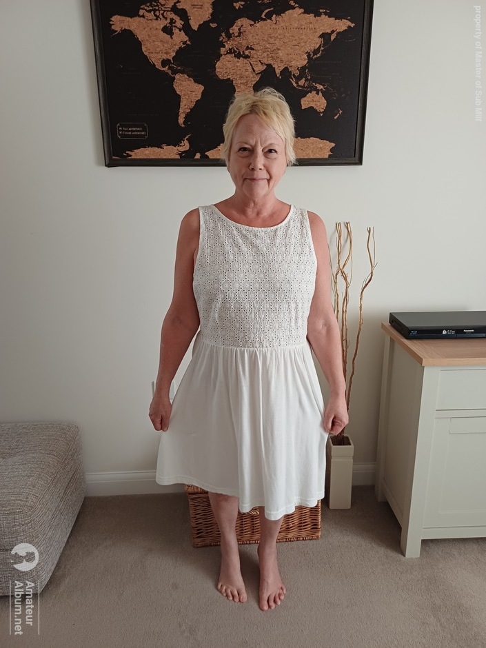 I am pleased you find my horny milf and her dress attractive, My horny milf was not wearing anything under the dress. like your wife, my milf does not wear underwear much, when you see her wear it in photos it is basically a prop.