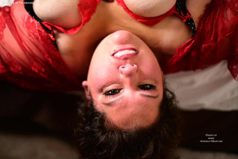 while that load is in her mouth, I'd like to dump my cum onto her forehead.