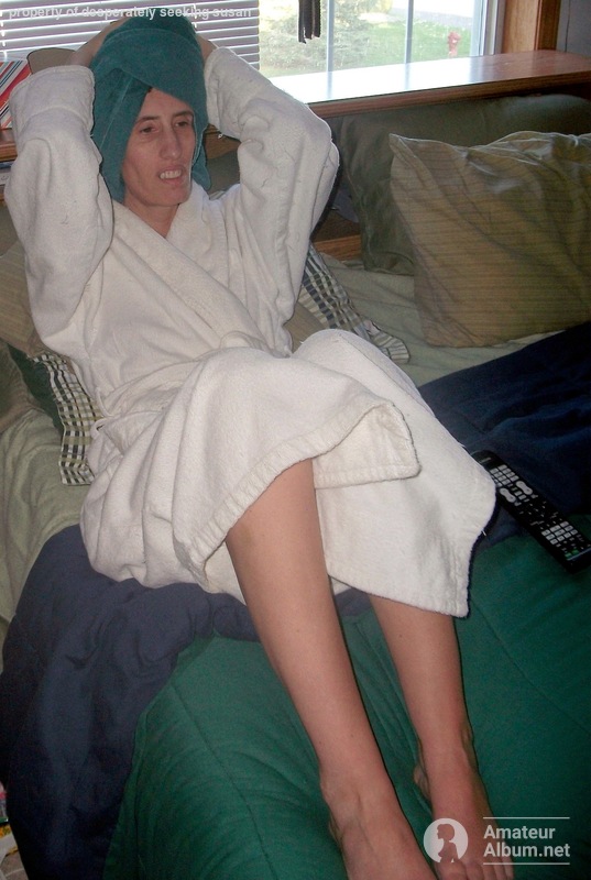 Sue in bed after a shower