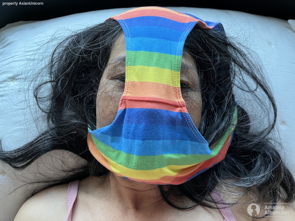 Wearing her worn panties as a face mask in the morning