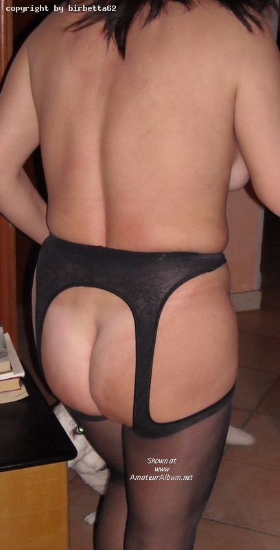 Your bum looks so sexy in black suspender pantyhose