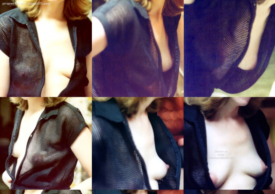 Filesize: 447Kb | | Young married exhibitionist chick in a variety of poses showing off her tits and nips in sexy open weave top worn at poker games | |