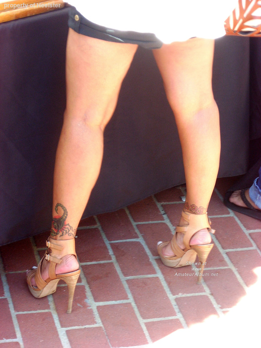 Yes she does! I wanted to talk with her but she was pre-occupied. Would love to do a photo shoot of her feet and heels....