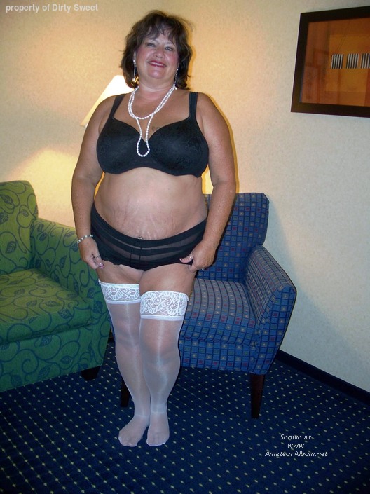 White stockings and black underwear looks sexy.