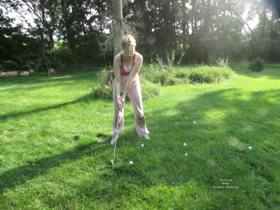 Practicing the golf swing :-) Too hot for a shirt :-)