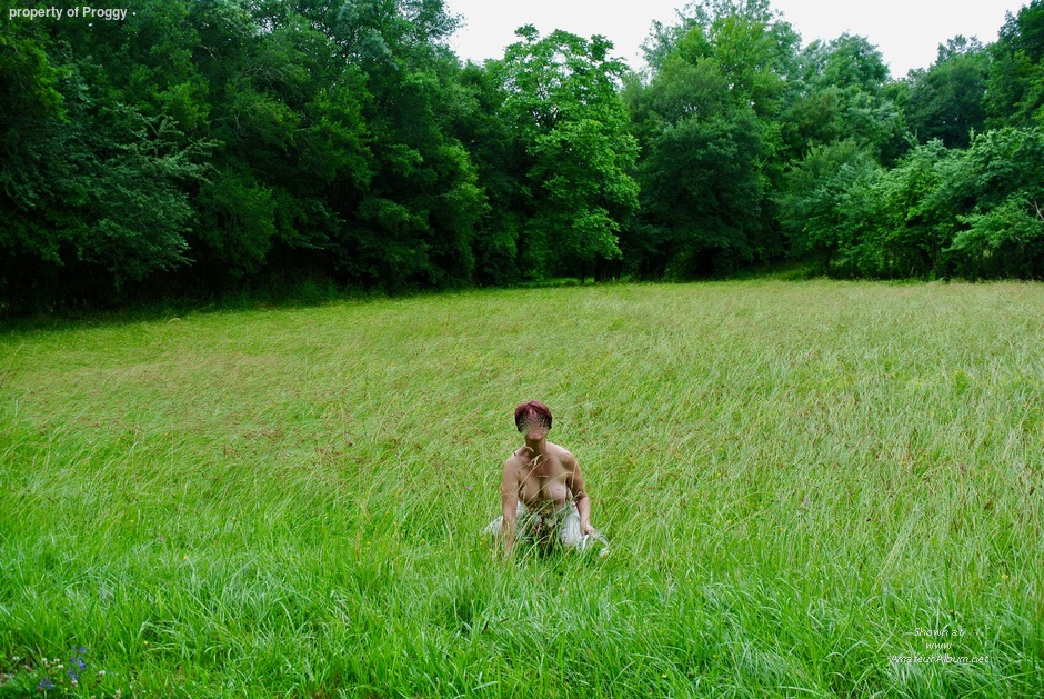 When making a good walk, I convinced my wife to take of her shirt and bra and to show her big tits to the world.