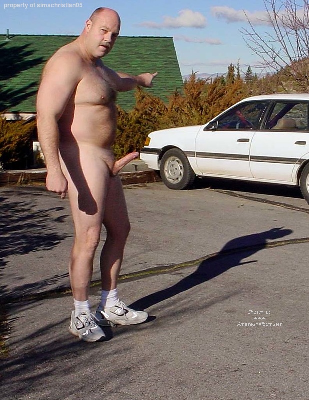 Naked in the parking lot.
