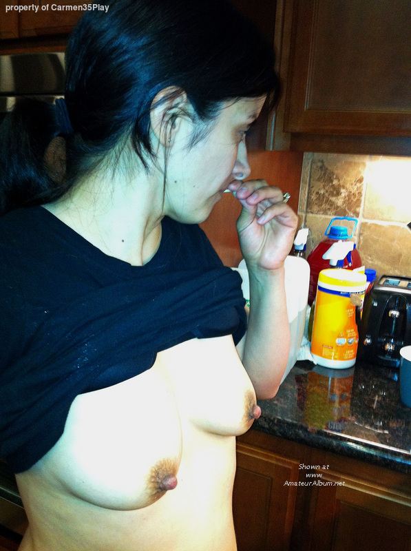 Flashing my tits in the kitchen again.
