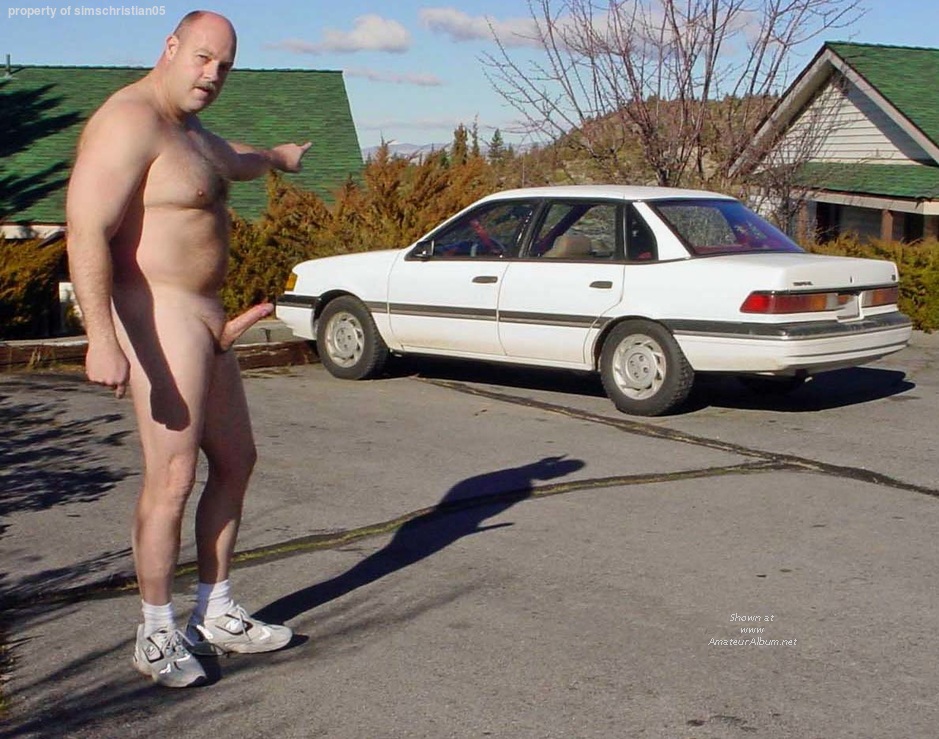 Naked in the parking lot.