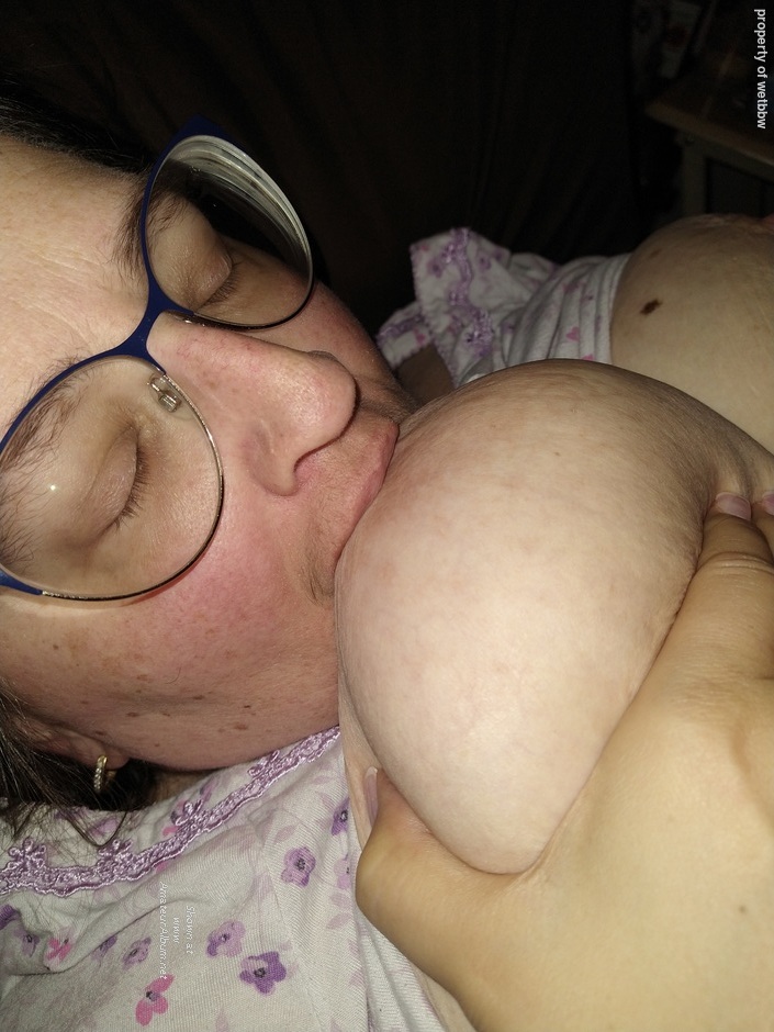 Having fun sucking my tits.