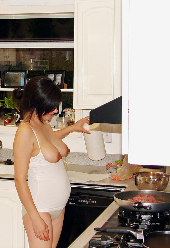 Naked pregnant tits in the kitchen.