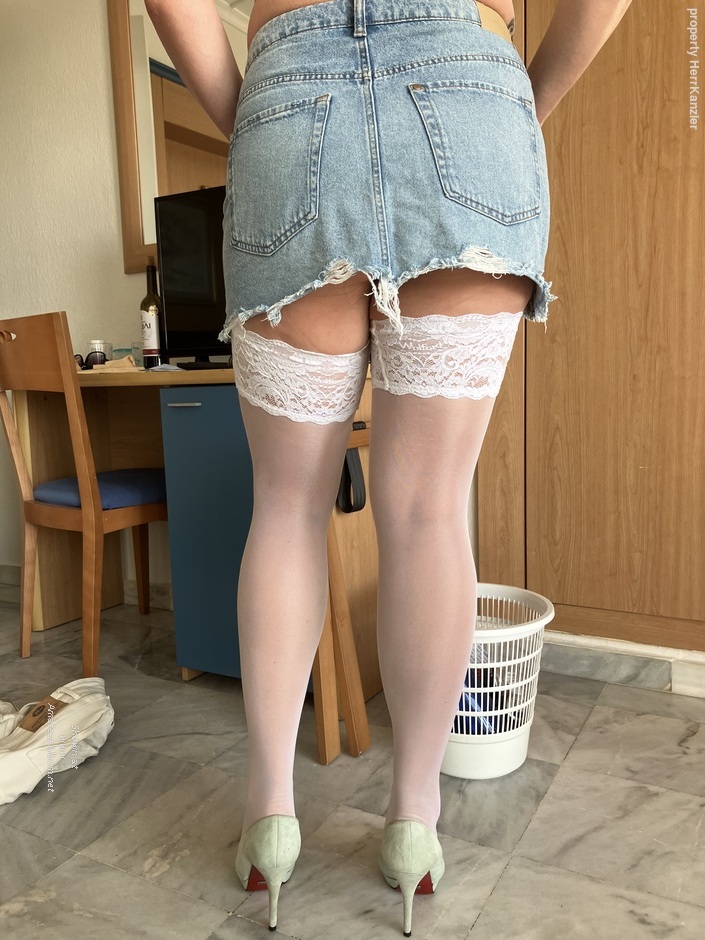 So sexy in white stockings!