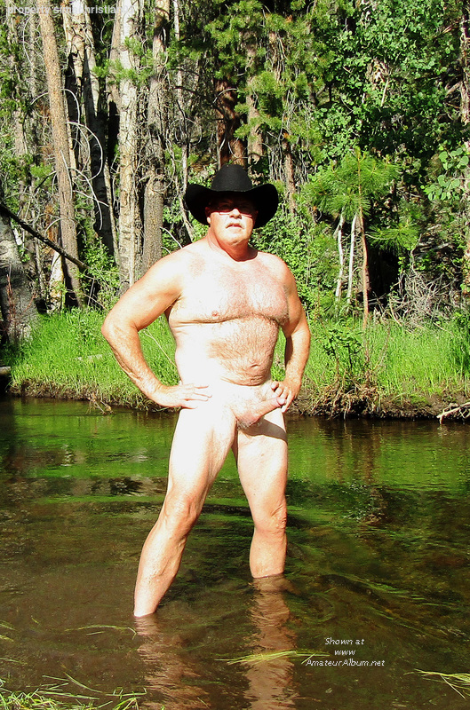 Naked in the creek.