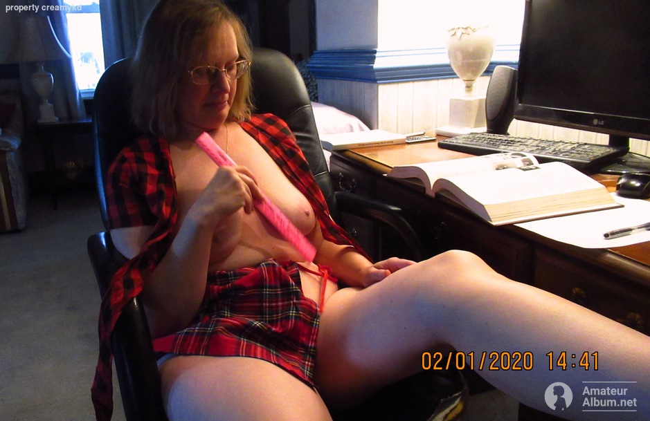 Filesize: 1.4Mb | | Tagged: back pictures distracted camera school taking waiting assignment trouble study | | a few years ago I decided to go back to college and finish my degree. I was the talk of the classroom because apparently ladies don't wear school girl uniforms in class . whatever, I made all the guys happy and some of the girls. but was told not to come back in that outfit, lol. when I got home my husband was waiting, like usual, with the camera. I sat down and tried to study my assignment, but I was distracted by him taking pictures and was having trouble concentrating. the more pictures he took the more distracted I got and the hornier I got. pretty soon I started to open up my top and reveal my boobs for the camera. then I undid my skirt and spread my legs. then, well you'll see. | |