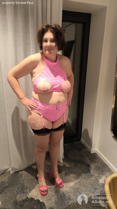 Do is trying on a new pink vinyl outfit, do you like it?