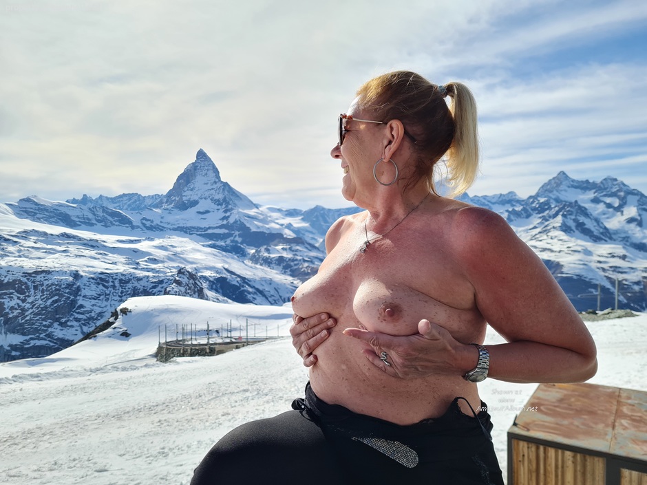 Frau Kuschel am Matterhorn. Berge sind so schön. Da kann sie dich vielleicht am Horn verwöhnen.
